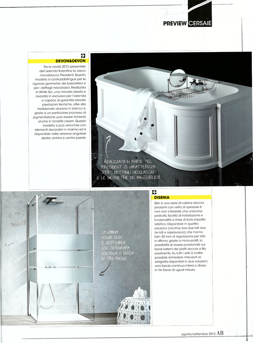The new web site Disenia.it, the shower cabins Slim and the modern bathroom My Seventy Plus.