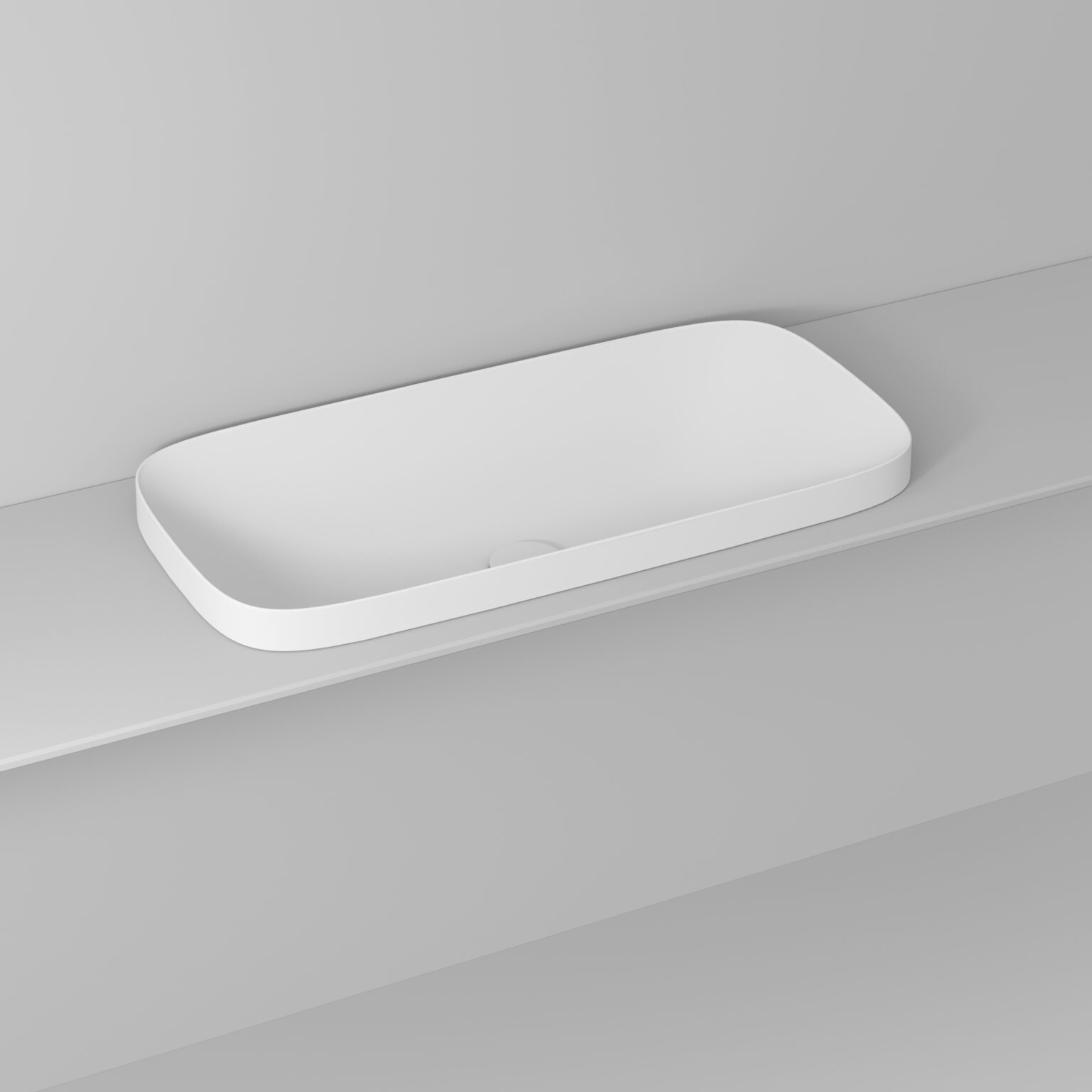 Alveo built-in washbasin in matt or glossy white ceramic, without overflow.