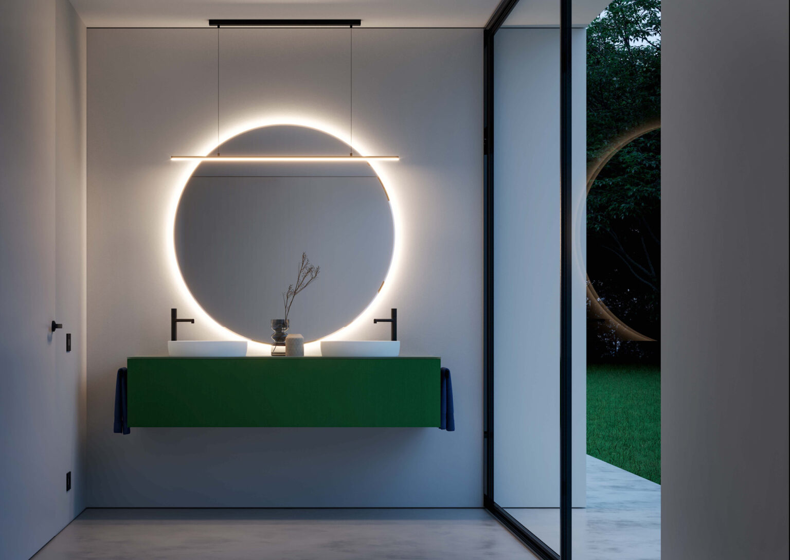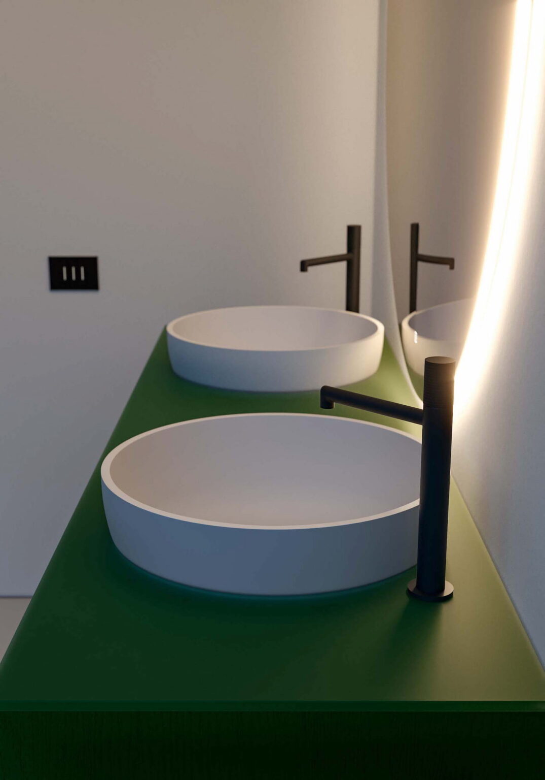 Bacinella built-in washbasin in glossy or matt white aquatek, without overflow. Complete with matching free-flow waste. Compatible with straight countertops.