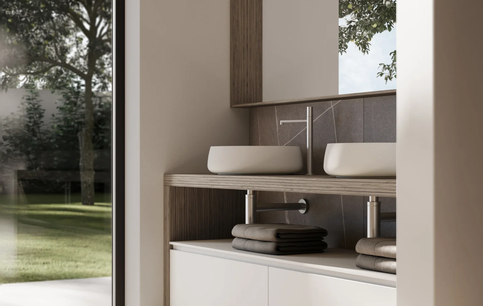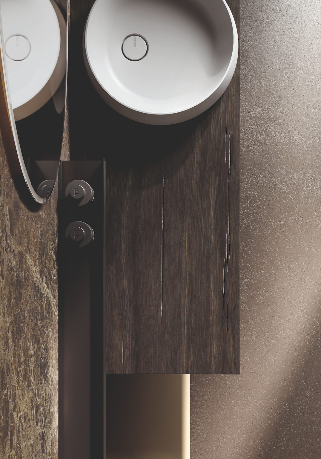 Cristalplant, a material praised for its natural stone-like appearance and velvety feel, is composed primarily of highly pure aluminium trihydrate mineral fillers bound together by Biobased® plant-derived (corn/maize) resins. It is hard-wearing, has photocatalytic properties that make it bacteria resistant, can be easily repaired in case of scratches, dents or yellowing, and is 100% recyclable.