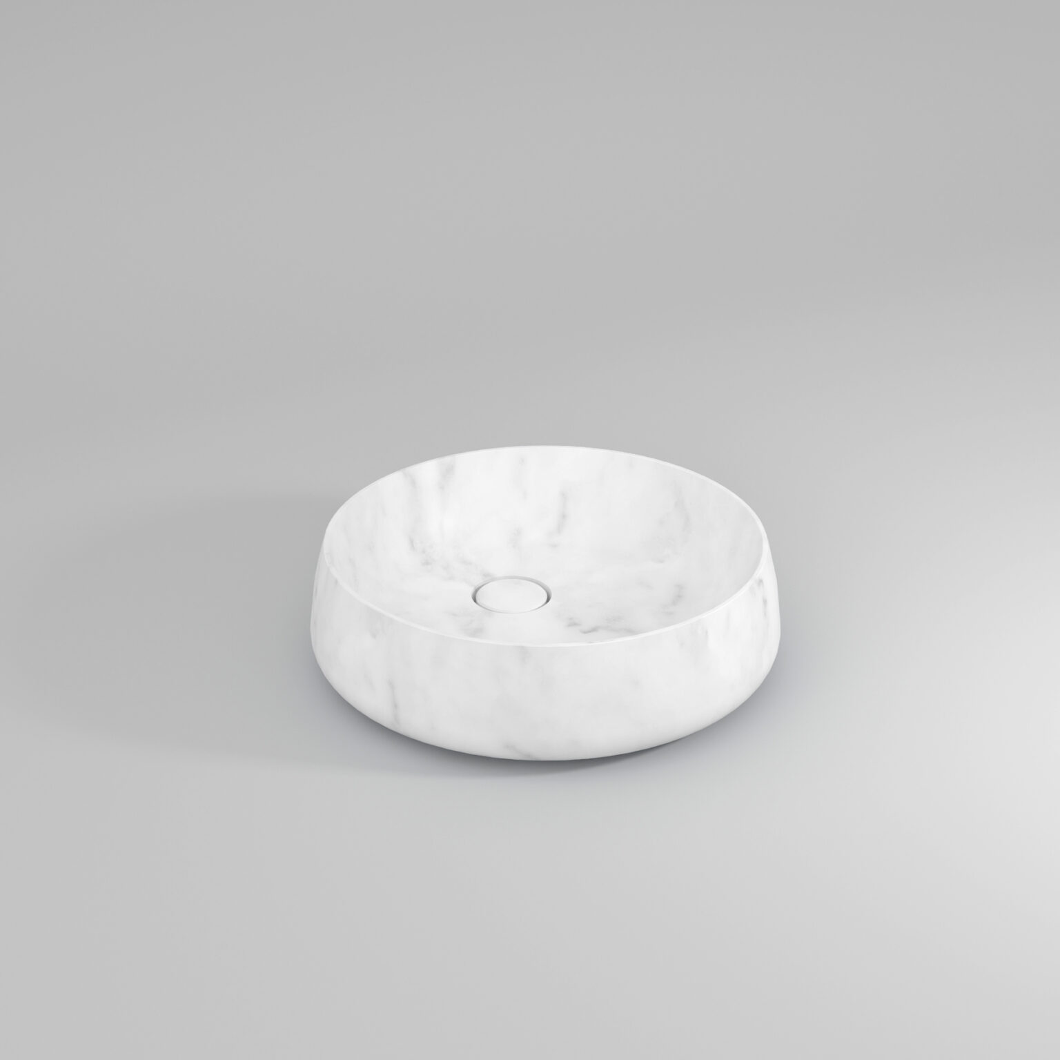 Beauty marble countertop washbasin. Without overflow, complete with matching free-flow waste. Compatible with 36 and 45.5 cm deep straight countertops.