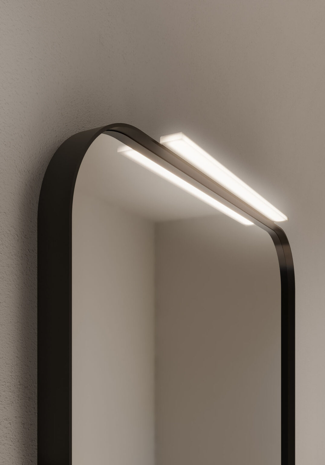 Bijou mirror with a varnished metal frame. Without light. Suitable for horizontal or vertical mounting.