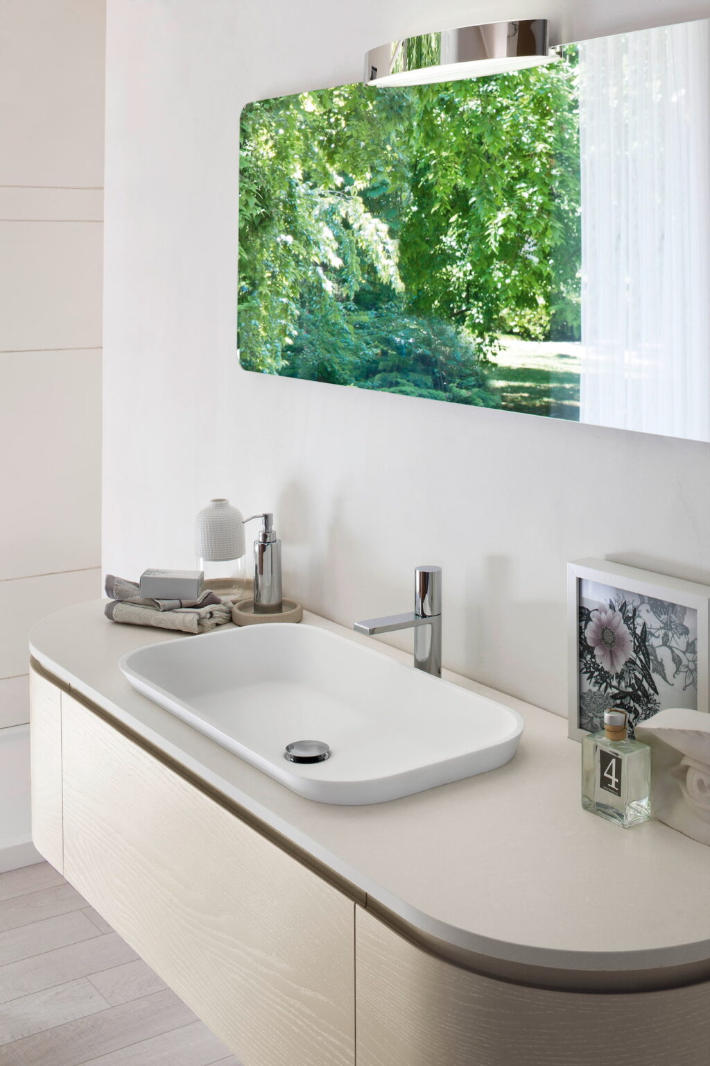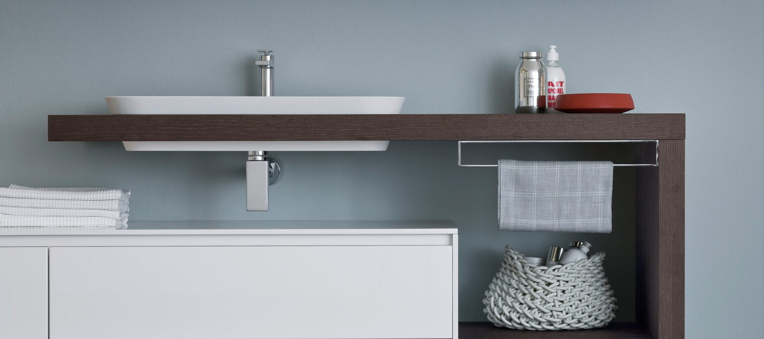 Aquatek washbasins are made of approx. 2/3 aluminium hydroxide and 1/3 high-quality acryl. Aquatek is non-porous and homogeneous throughout its thickness. It retains its shape and is highly resistant to impacts, heat and common chemicals. Scratches and stains can be easily removed with the abrasive sponge provided.