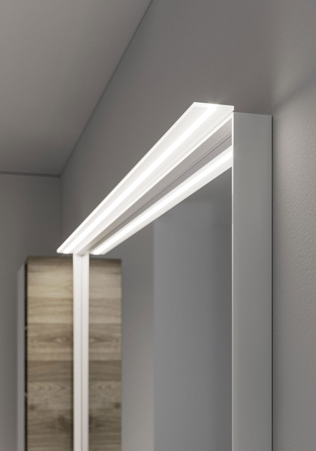 Frame aluminium-framed mirror. Can be hung horizontally or vertically. This model cannot be fitted with a shaver socket or switch.