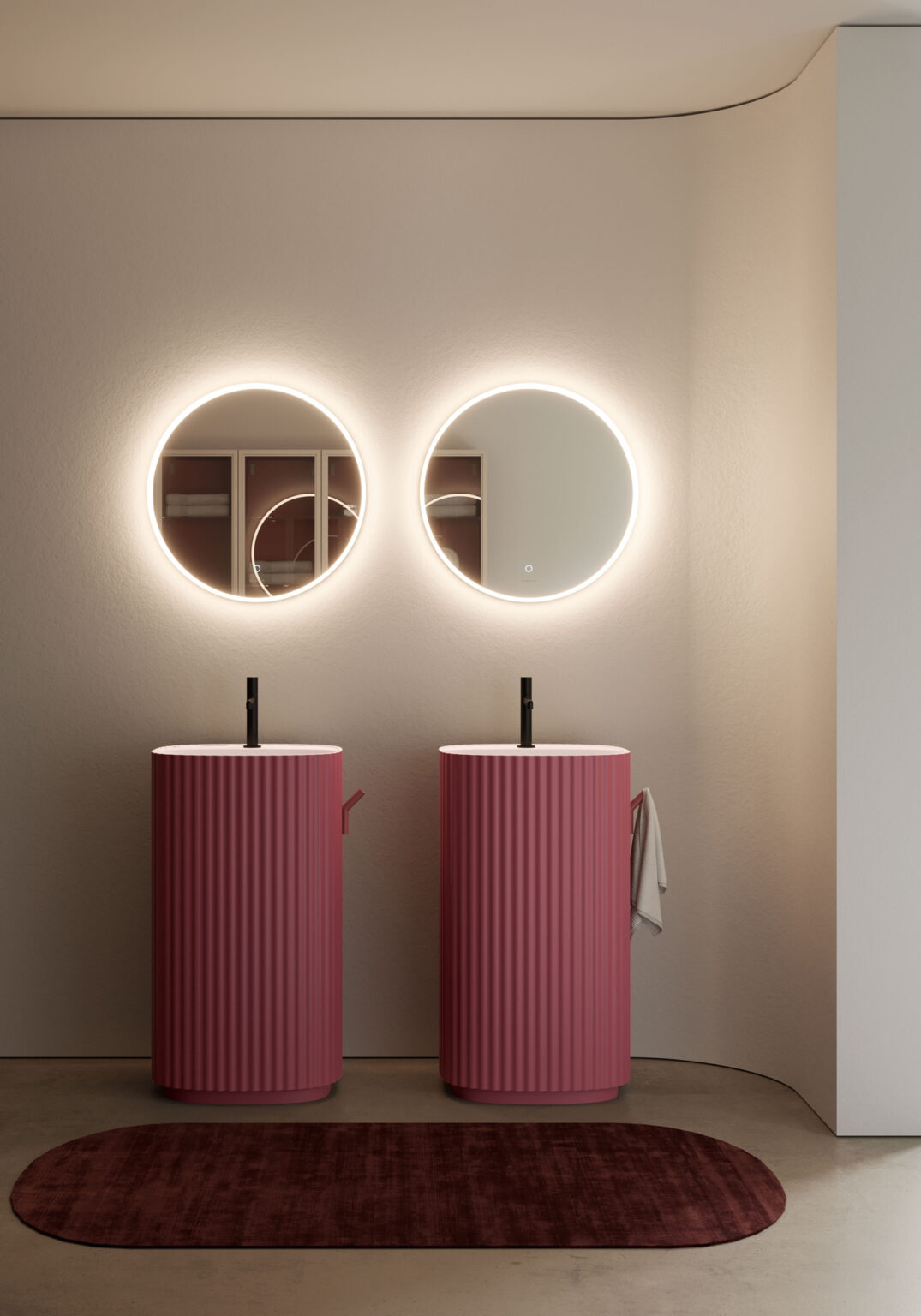 Giove02 Cristalplant® free-standing washbasin. Available matt white, coloured on the outside, or coloured both inside and outside in any matt and Metal colour in the Ideagroup palette (the Metal Color finish can only be applied to the exterior). With tap hole and overflow.