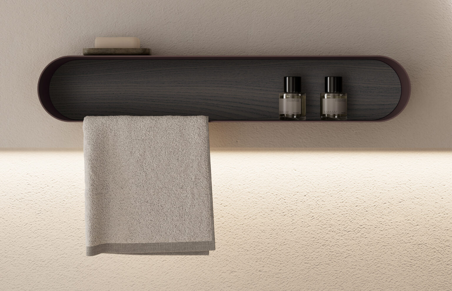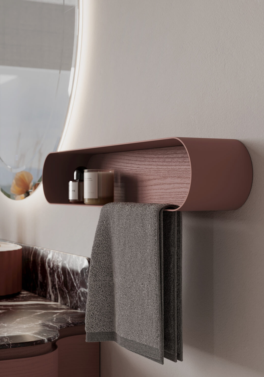 Iceberg accessory with a *COLOR metal frame and a customisable back panel, with/without towel rail. R/L versions available.