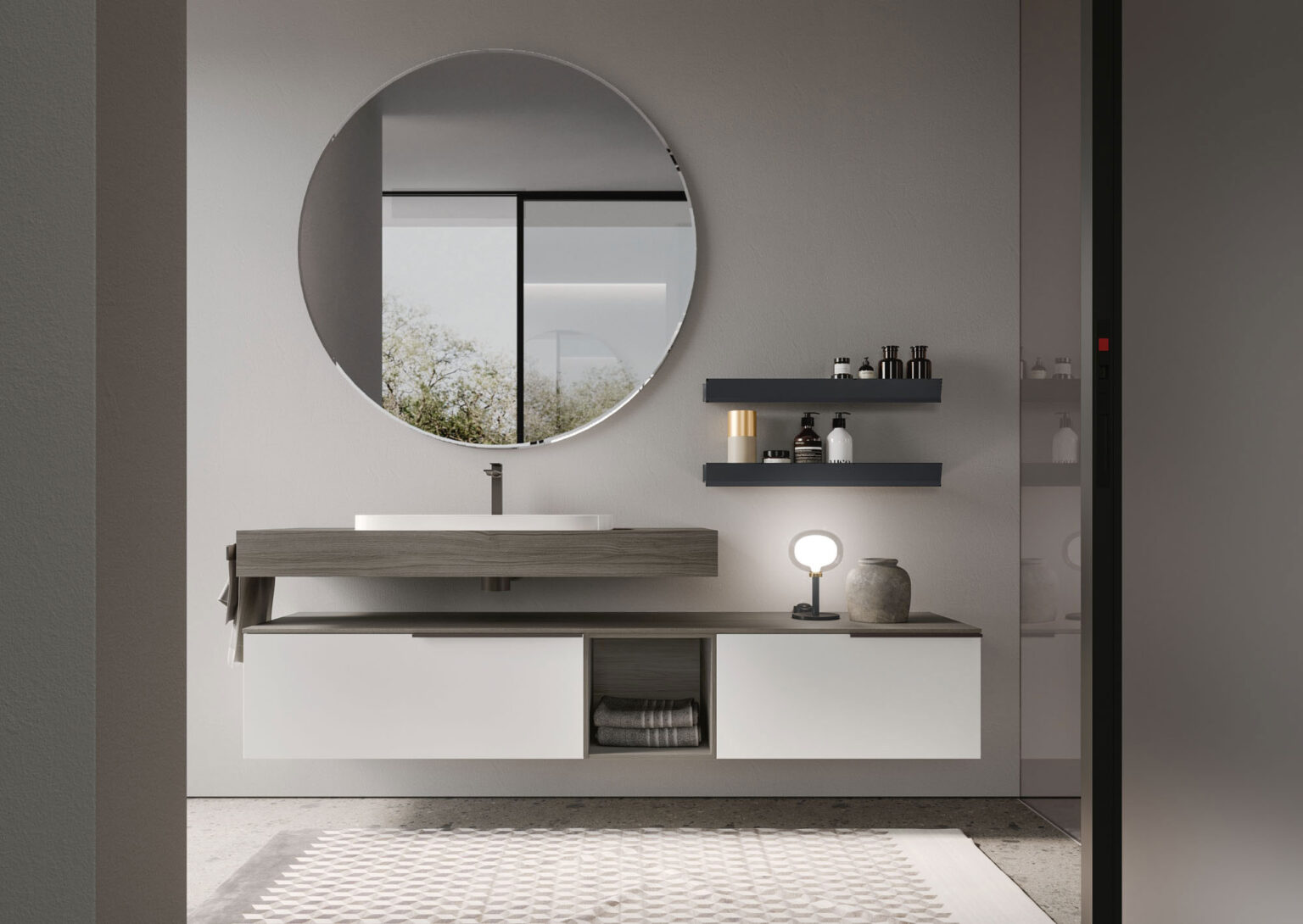 Lap mirror with a 10 mm bevelled edge. Compatible with ARKO light only. IP44 – 3000/4000 K 6 to 12 W – 650 to 1350 lm