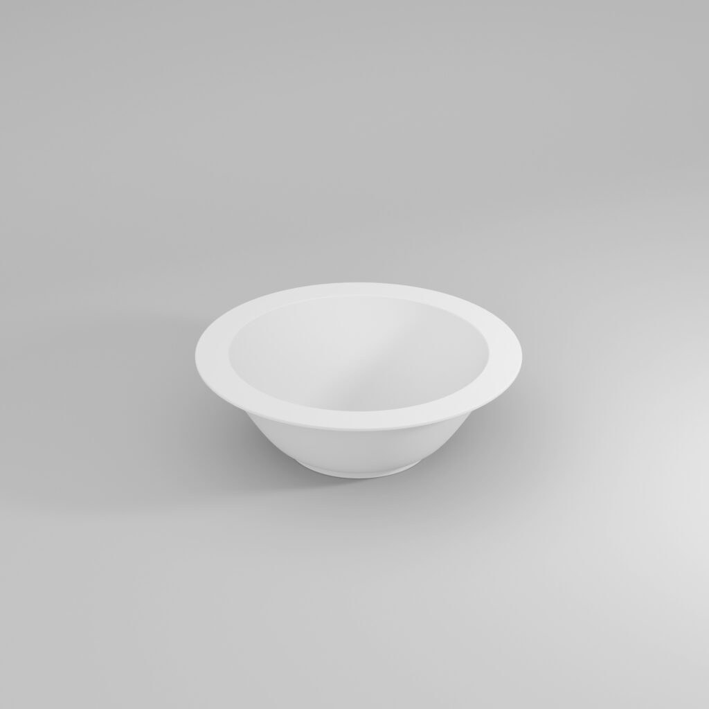 Marea countertop washbasin in glossy or matt white ceramic, without overflow. Complete with matching free-flow waste. Compatible with 45.5 cm deep straight countertops.