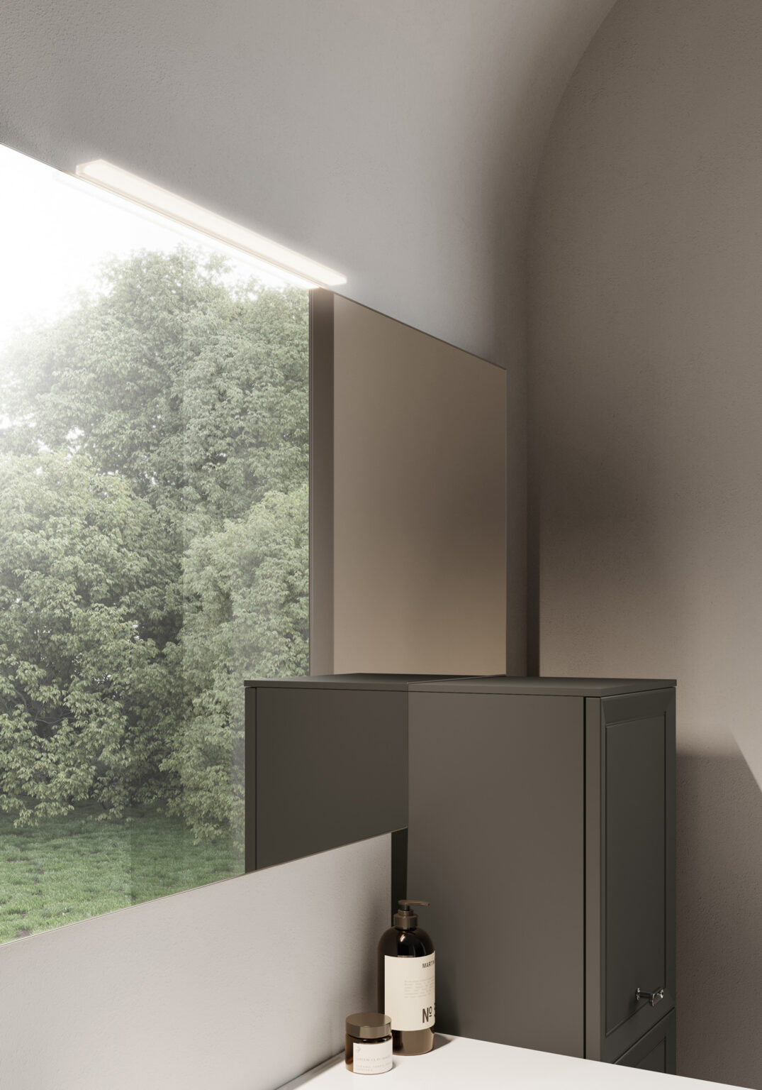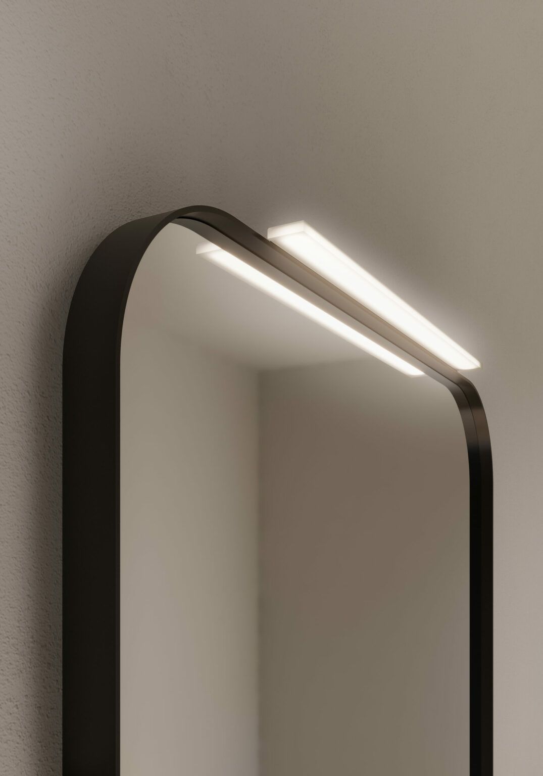 Piuma light in Methacrylate. Suitable for Elma, Elmas, Lag/Lan, Prisma, Sat/Sal and Bijou mirrors. LED lighting. IP44 – 3000/4000 K 3 W – 900 lm