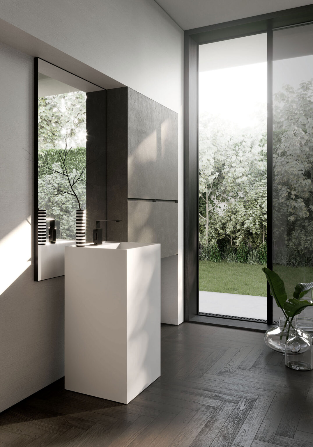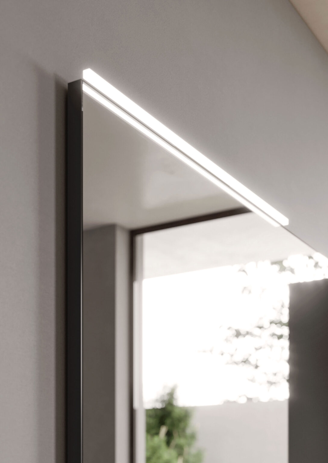 SAT/SAL aluminium-framed mirror. Can be hung horizontally or vertically. Compatible with Cubik, Double, Lido, Logica, Reflex, RS, Strip, Symply, Time, Web and Piuma lights.