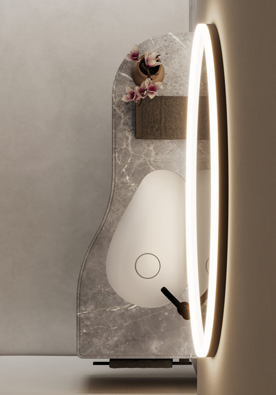 Aquagel is a compound made from natural minerals and polymer resins. A resin coating ensures it is completely impermeable and resistant to chemical agents. Aquagel feels like ceramic to the touch, but outperforms it in both durability and aesthetics. It comes in both matt and glossy finishes, and is available in white and in all colours in the Ideagroup colour palette (except black and Metal Color). Aquagel is also antibacterial, fireproof and self-extinguishing.