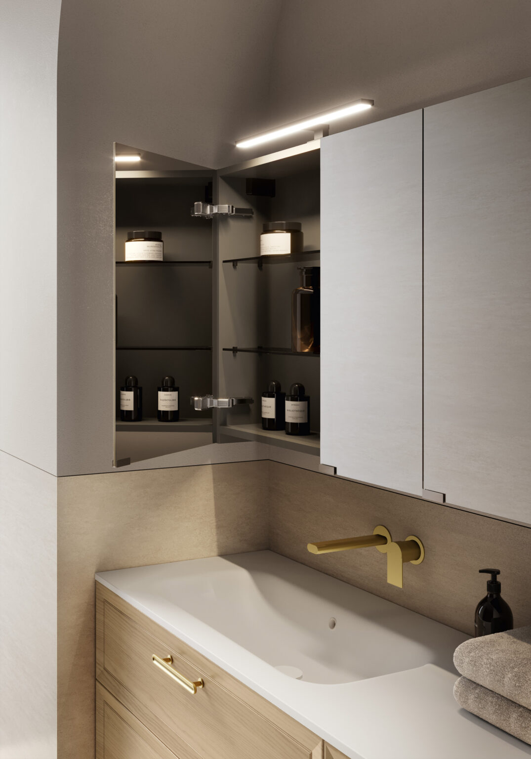 Web light, suitable for Elma, Elmas, and Sat/Sal mirrors, and wall cabinets with double-sided mirror doors. LED lighting.