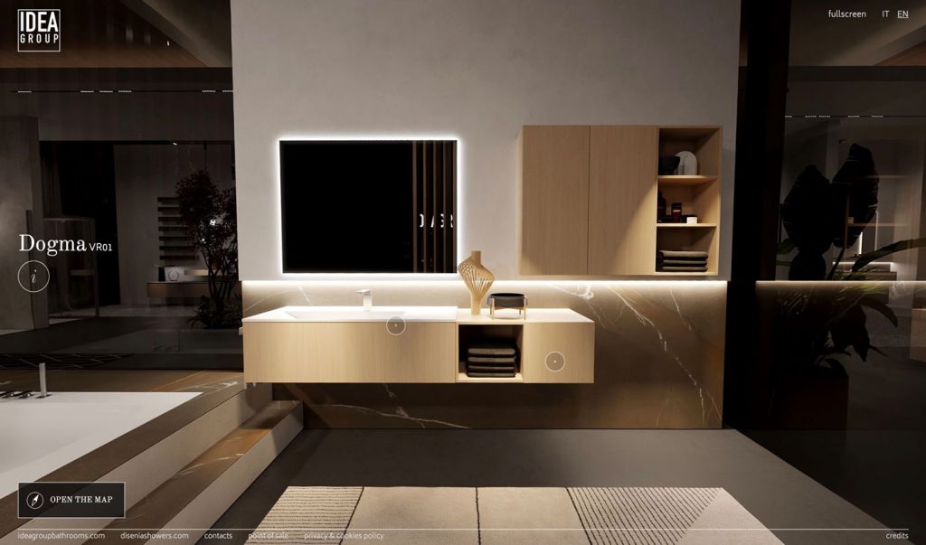 This is a virtual, user-friendly and responsive space ready to use wherever you are to help you discover the Aqua and Idea bathroom furniture collections and Disenia shower enclosures, bathtubs and shower trays. Navigate the virtual showroom to see all the extra advantages of the collection and find the best solution to meet your needs!
