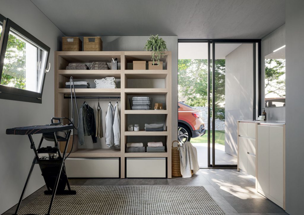 Spazio Time is a collection of stylish, functional laundry room furniture. Equipped with accessories, complementary items, and wall shelves, it’s the perfect solution for small laundry rooms, maximising space efficiency even for tight layouts with just a washing machine and dryer.