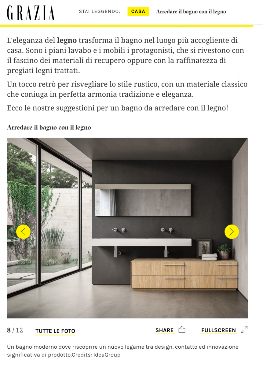 Grazia.it, digital edition of the Italian magazine, selected Sense by Aqua as one of the best wood bathroom furniture collections of the year.